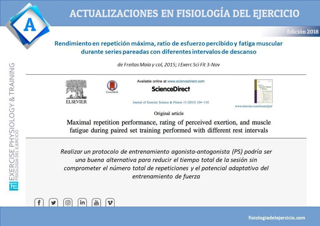 Rendimiento en repetición máxima, ratio de esfuerzo percibido y fatiga muscular durante series pareadas con diferentes intervalos de descanso