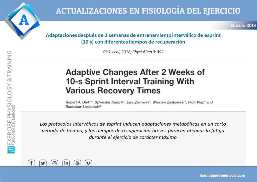 Cambios adaptativos tras 2 semanas de entrenamiento interválico de esprint (10 s) con varios tiempos de recuperación