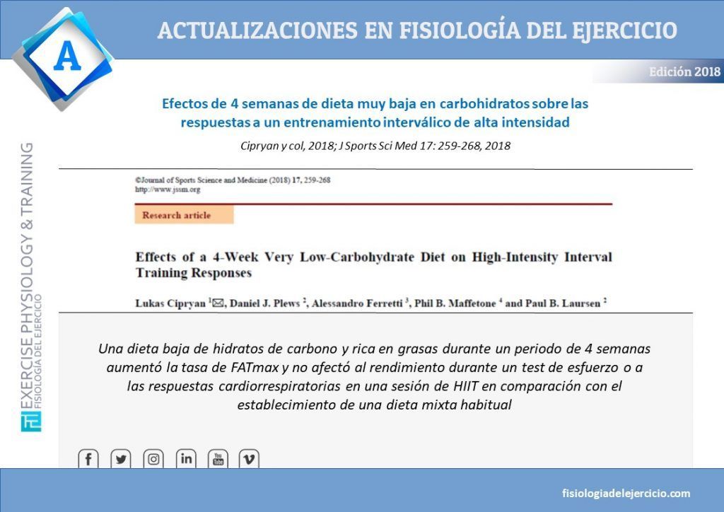 Efectos de 4 semanas de dieta muy baja en carbohidratos sobre las respuestas a un entrenamiento interválico de alta intensidad