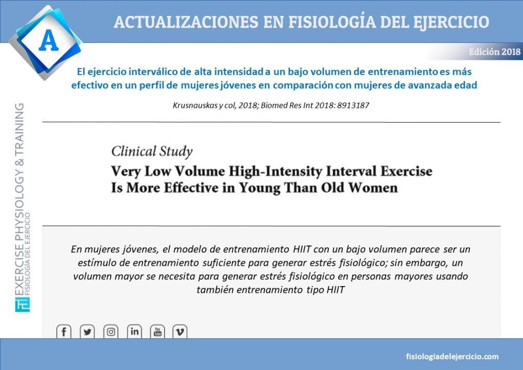 El ejercicio interválico de alta intensidad a un bajo volumen de entrenamiento es más efectivo en un perfil de mujeres jóvenes en comparación con mujeres de avanzada edad