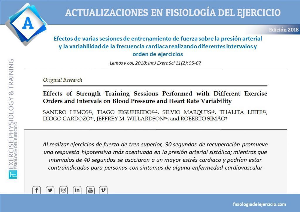 Efectos de varias sesiones de entrenamiento de fuerza sobre la presión arterial y la variabilidad de la frecuencia cardiaca realizando diferentes intervalos y orden de ejercicios