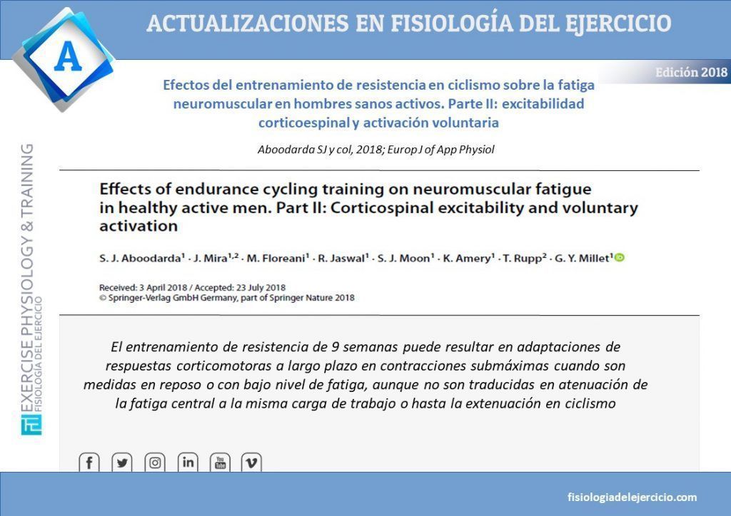 Efectos del entrenamiento de resistencia en ciclismo sobre la fatiga neuromuscular en hombres sanos activos. Parte II: excitabilidad corticoespinal y activación voluntaria