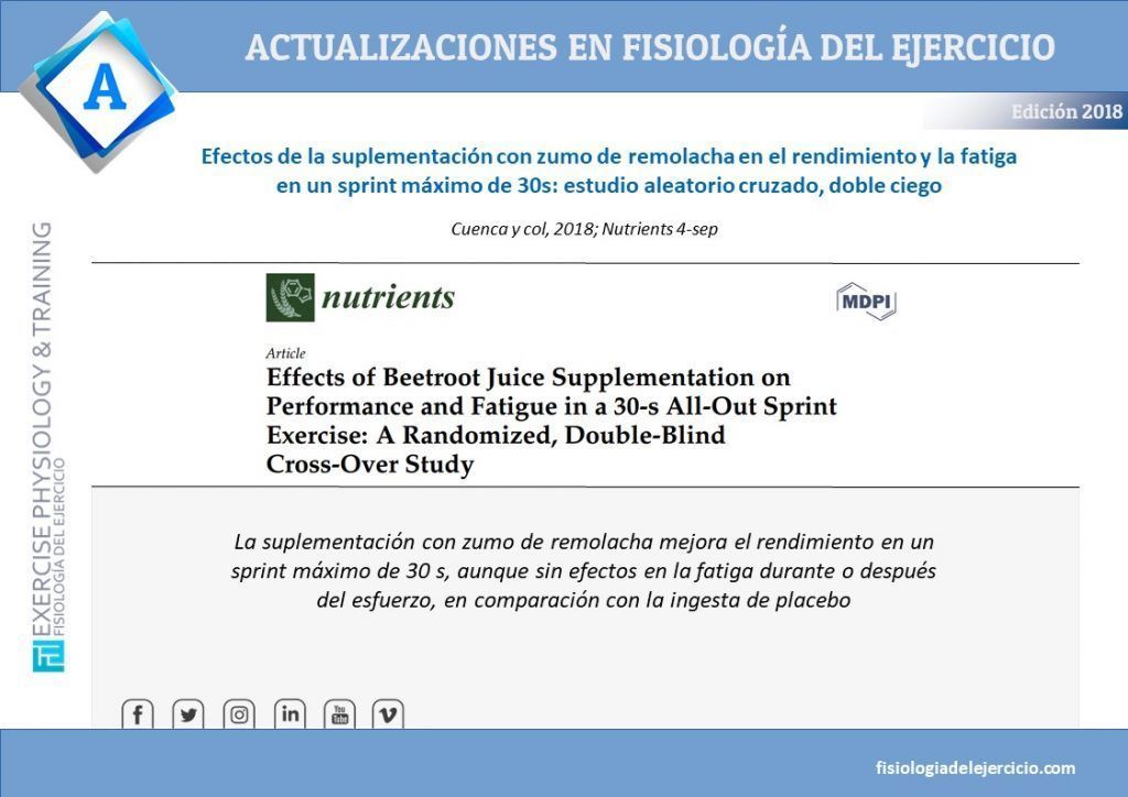Efectos de la suplementación con zumo de remolacha en el rendimiento y la fatiga en un sprint máximo de 30s: estudio aleatorio cruzado, doble ciego