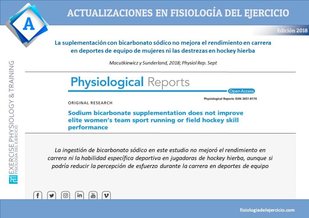 La suplementación con bicarbonato sódico no mejora el rendimiento en carrera en deportes de equipo de mujeres ni las destrezas en hockey hierba