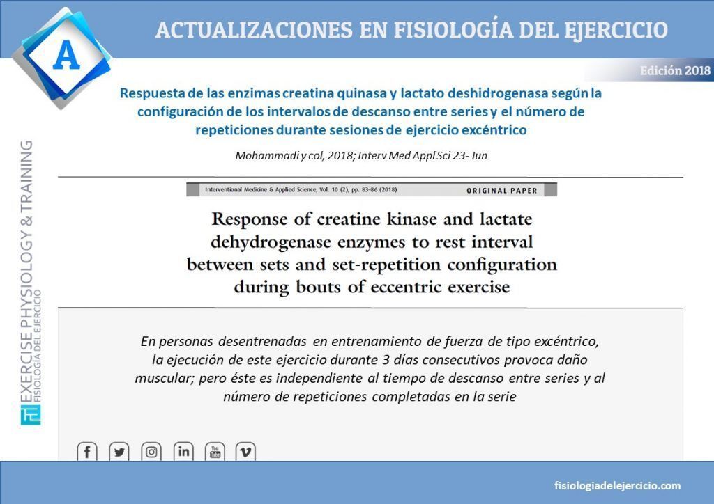 Respuesta de las enzimas creatina quinasa y lactato deshidrogenasa según la configuración de los intervalos de descanso entre series y el número de repeticiones durante sesiones de ejercicio excéntrico