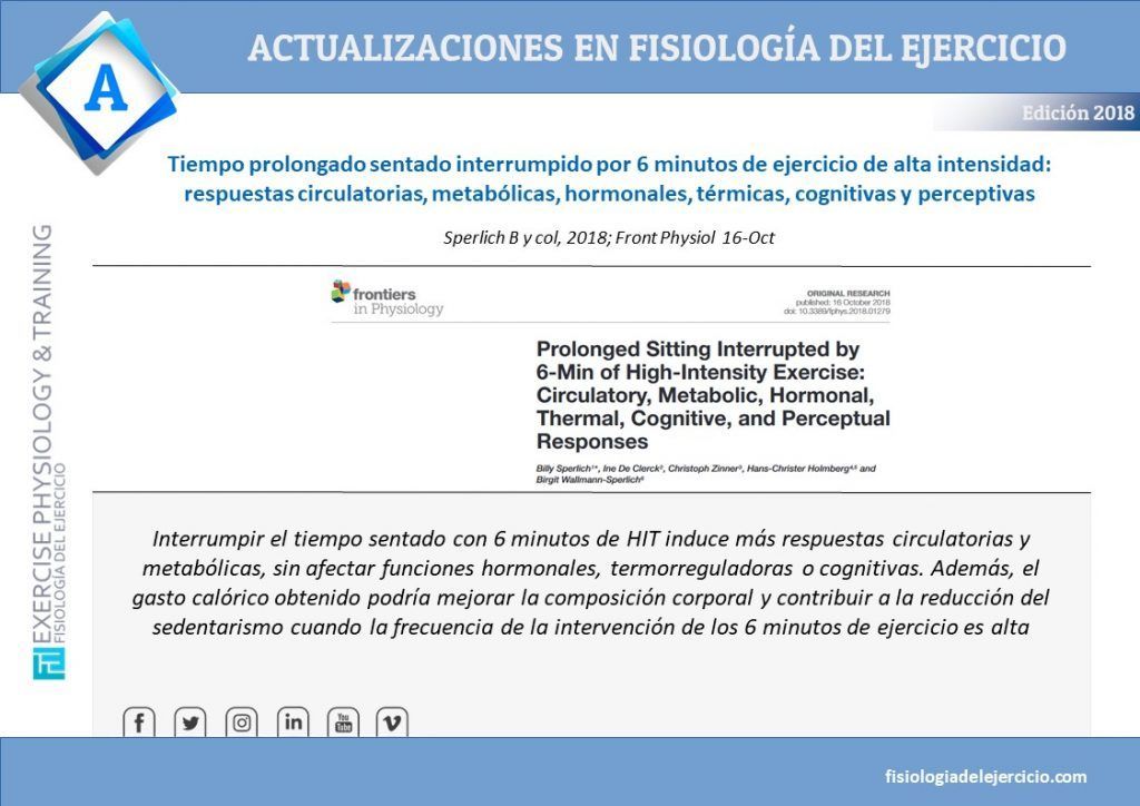 Tiempo prolongado sentado interrumpido por 6 minutos de ejercicio de alta intensidad: respuestas circulatorias, metabólicas, hormonales, térmicas, cognitivas y perceptivas