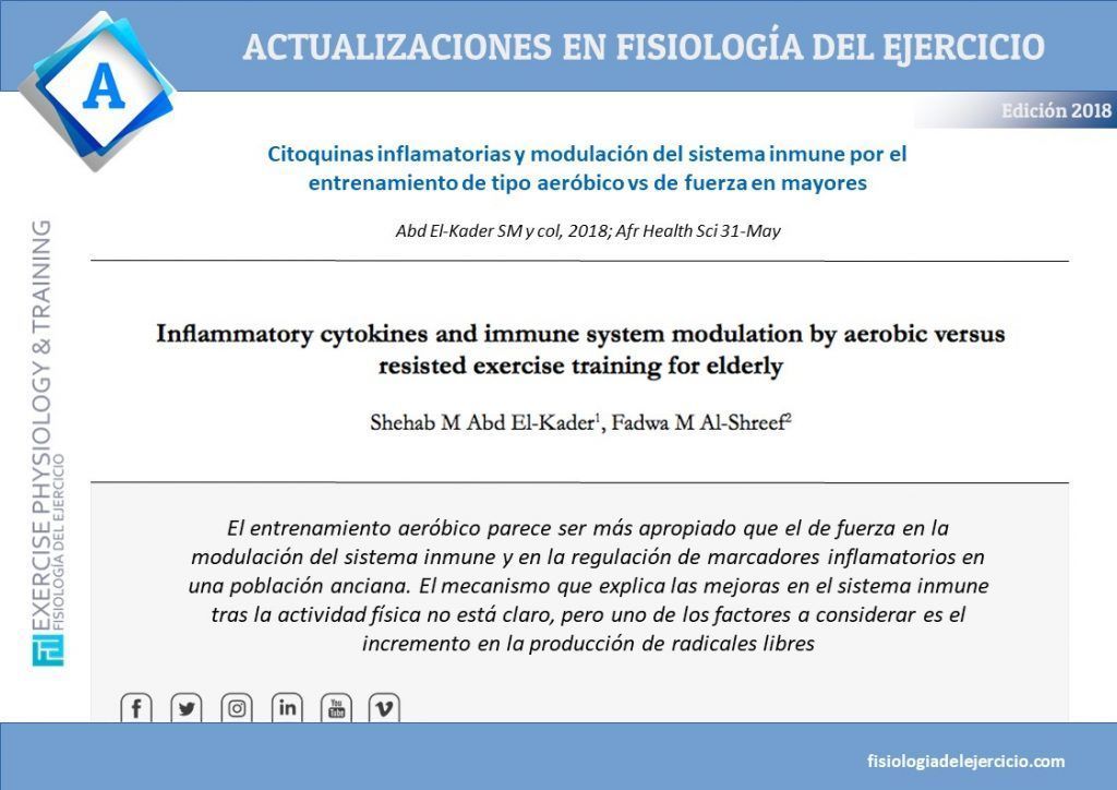 Inflammatory cytokines and immune system modulation by aerobic versus resisted exercise training for elderly (pdf original) Abd El-Kader SM y…...