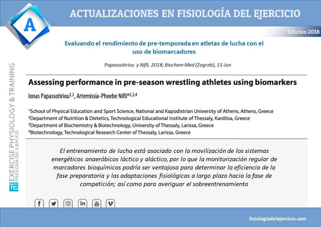 Assessing performance in pres-season wrestling athletes using biomarkers (pdf original) Papassotiriou L y Nifli A Biochem Med (Zagreb). 2018 Jun…...