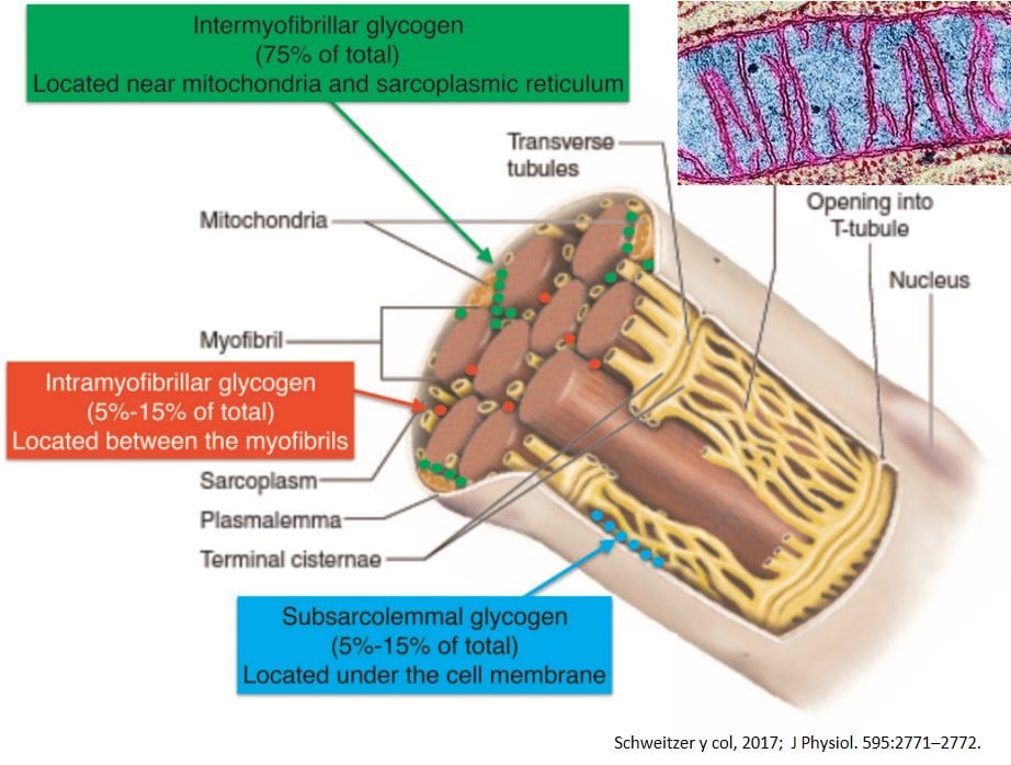 Las partículas de glucógeno están situadas en áreas clave de la célula muscular en la vecindad de los principales sitios […]