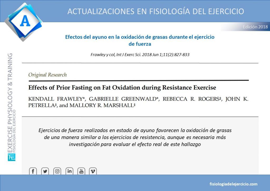 Effects of prior fasting on fat oxidation during resistance exercise (pdf original) Frawley K, Greenwald G, Rogers RR y col…...