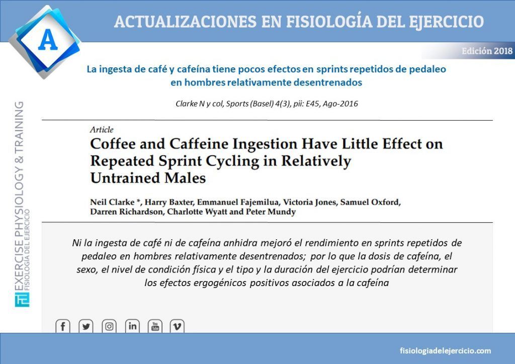 Coffee and caffeine ingestion have little effect on repeated sprint cycling in relatively untrained males (pdf original) Clarke N, Baxter…...