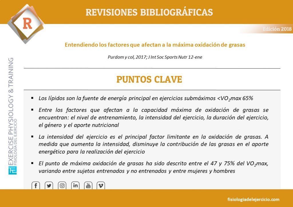 Understanding the factors that effect maximal fat oxidation (pdf original) Purdom T, Kravitz L, Dokladny K y Mermier C J Int Soc Sports Nutr. 2018 Jan 12;15:3. […]