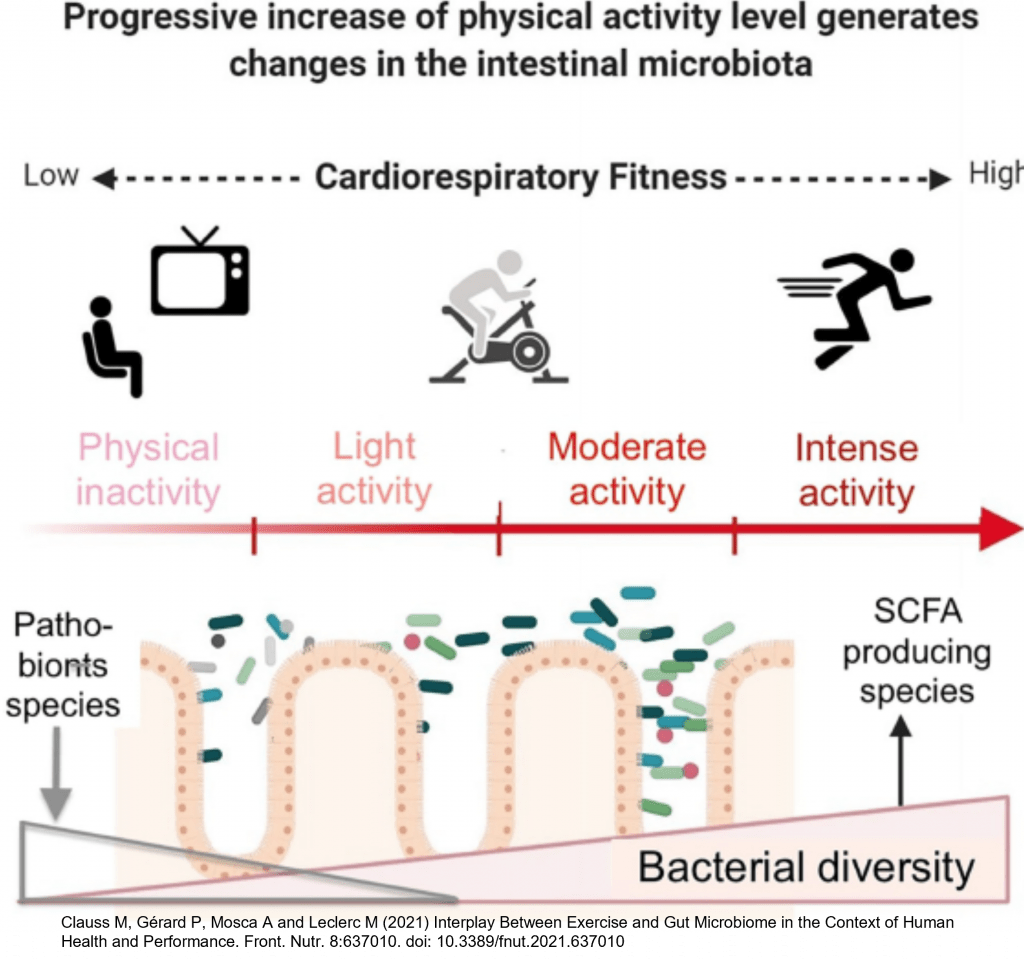 Se ha demostrado que la microbiota intestinal y el ejercicio están interconectados, de tal manera que la realización de ejercicio